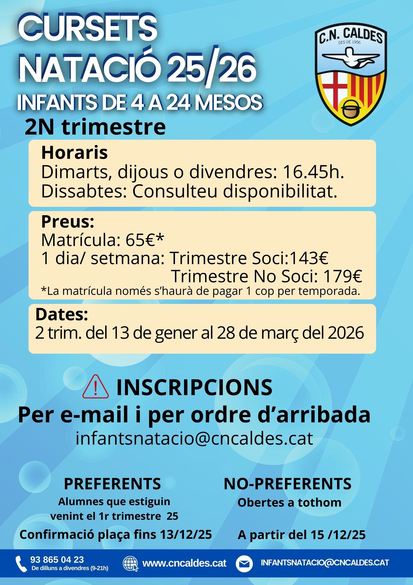 INFORMACIÓ CURSETS DE NATACIÓ INFANTS DE 4 A 24 MESOS - TEMPORADA 25/26